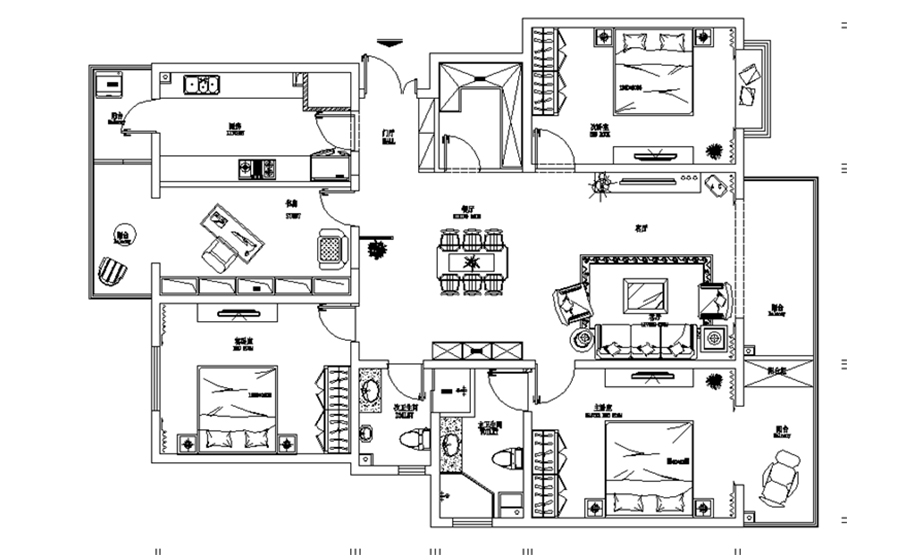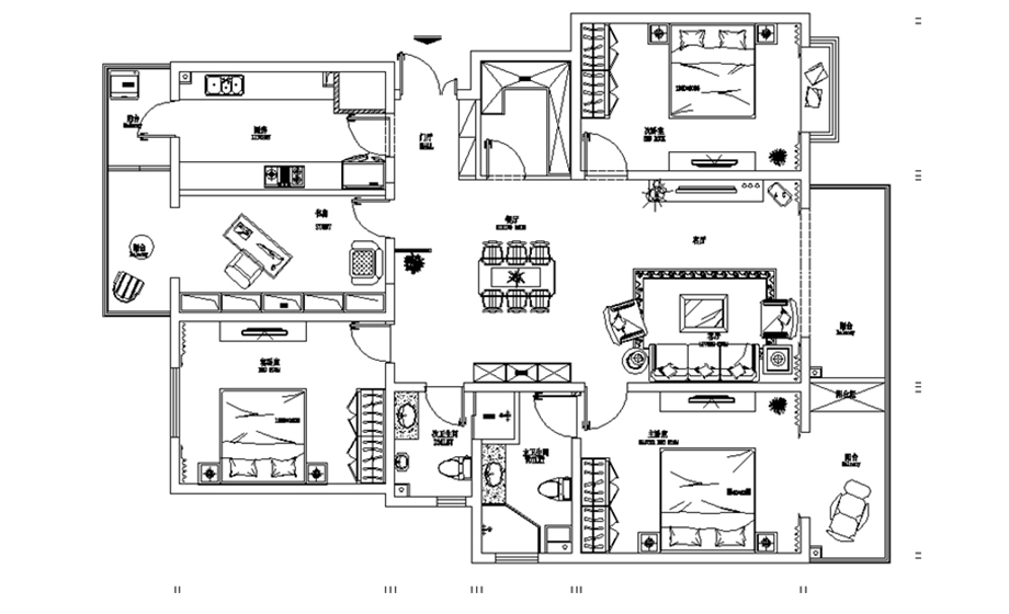 廚房:廚房空間較大,所以將櫥柜操作臺的空間設置的比較完善,將家用廚房電器修進行了合理的規(guī)劃。