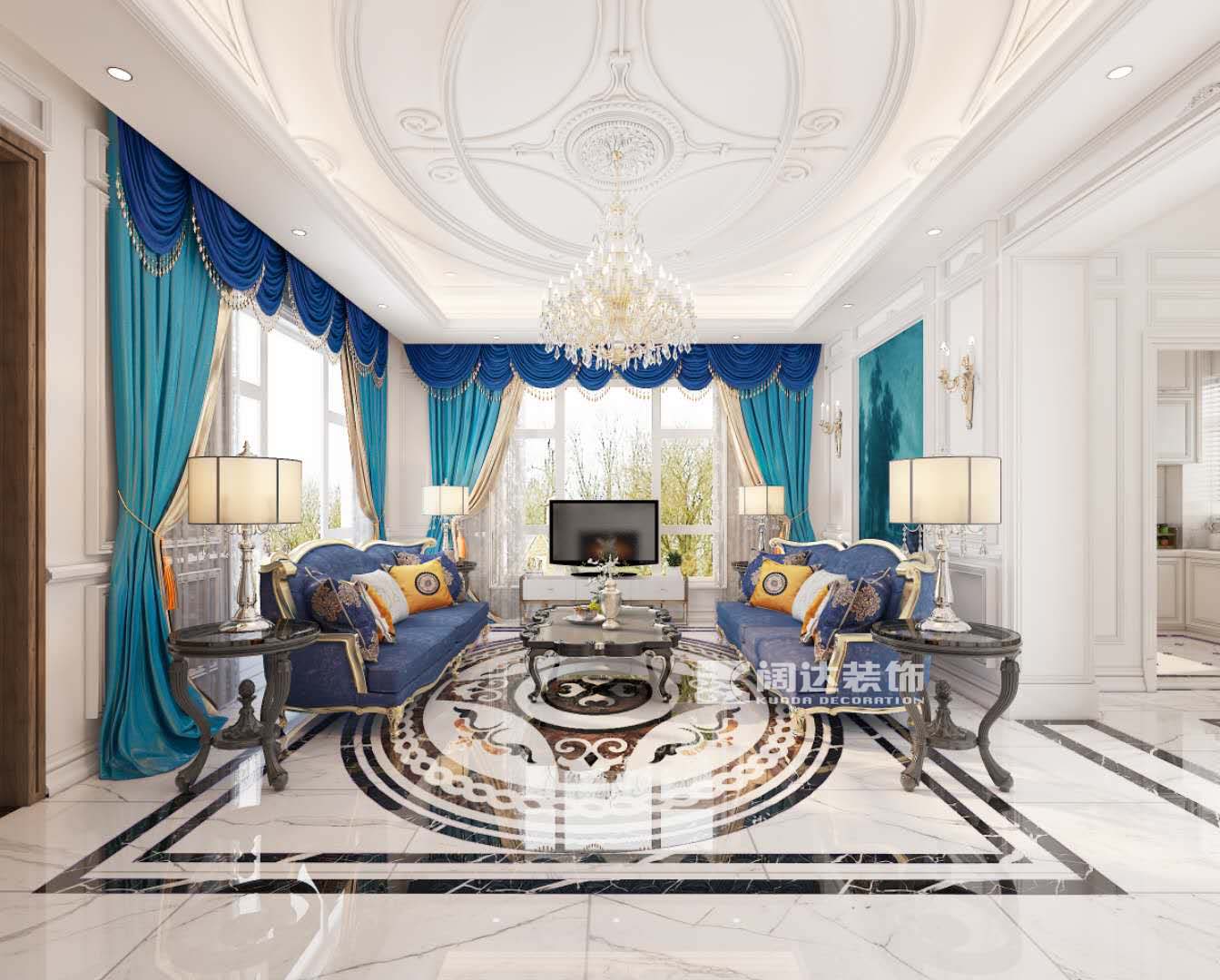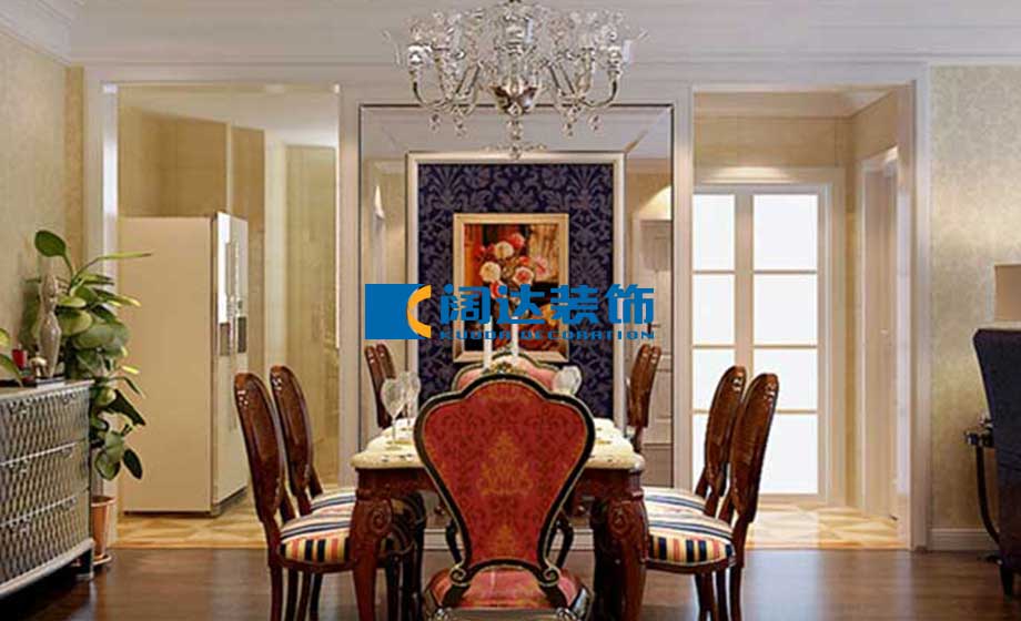 本案設計風格為歐式風格,營造典雅、自然、高貴的氣質、浪漫的情調是本案的主題。生活在繁雜多變的世界里已是煩擾不休,而自然的生活空間卻能讓人身心舒暢,感到寧靜和安逸;借著室內空間的解構和重組,便可以滿足我們對悠然自得的生活的向往和追求,讓我們在紛擾的現代生活中找到平衡,締造出一個令人心馳神往的寫意空間。客廳、餐廳:客廳、餐廳背景墻和沙發背景墻是整個房間的設計亮點,因為這兩面墻是一進入戶門正對的兩面墻,在材質的運用上選擇鏡面,是想把空間延伸,在簡單中帶著造型,緊扣簡歐風格的主題