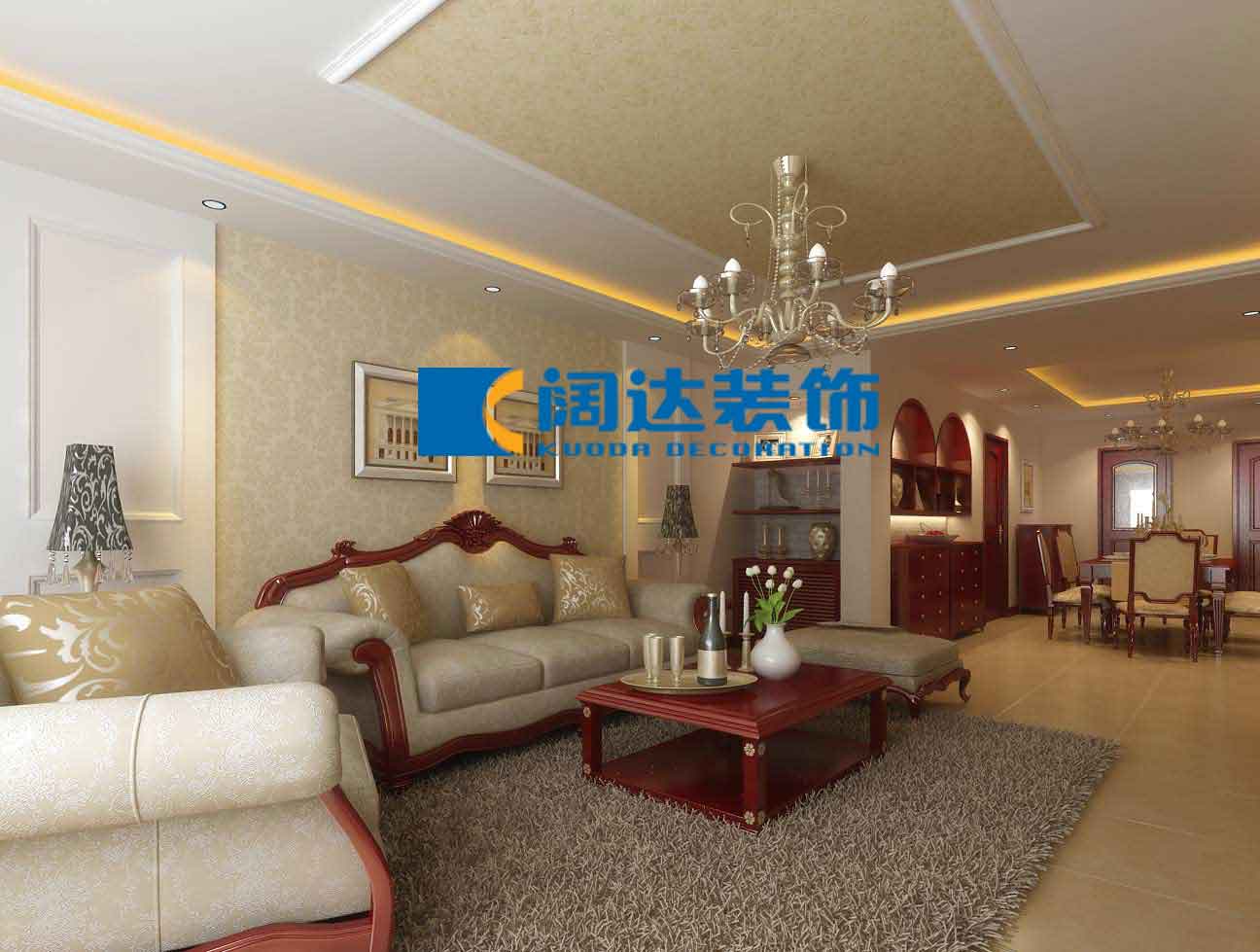 本案例采用歐式設計風格,通過整體色彩及家具的搭配營造自然、舒適、高雅的生活氛圍,此設計案例也在相當程度上表現出其居住者的品位、愛好和生活價值觀。