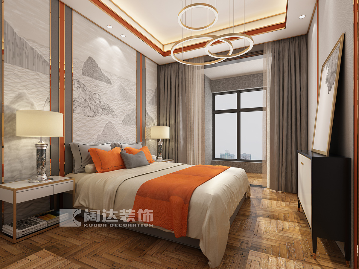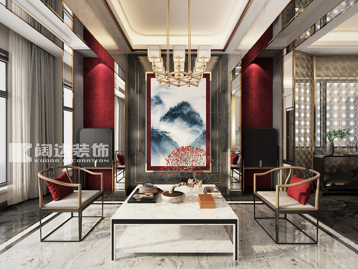 此案例沒有繁瑣的裝飾,局部色彩的點綴和金屬扣線的裝飾使中式風(fēng)格更具有現(xiàn)代靈動的感覺。整體空間闡釋這生活的哲思,回歸內(nèi)心的平靜,去尋找屬于自己的靈魂,讓設(shè)計蛻變?yōu)橛袦囟鹊纳钏囆g(shù)。