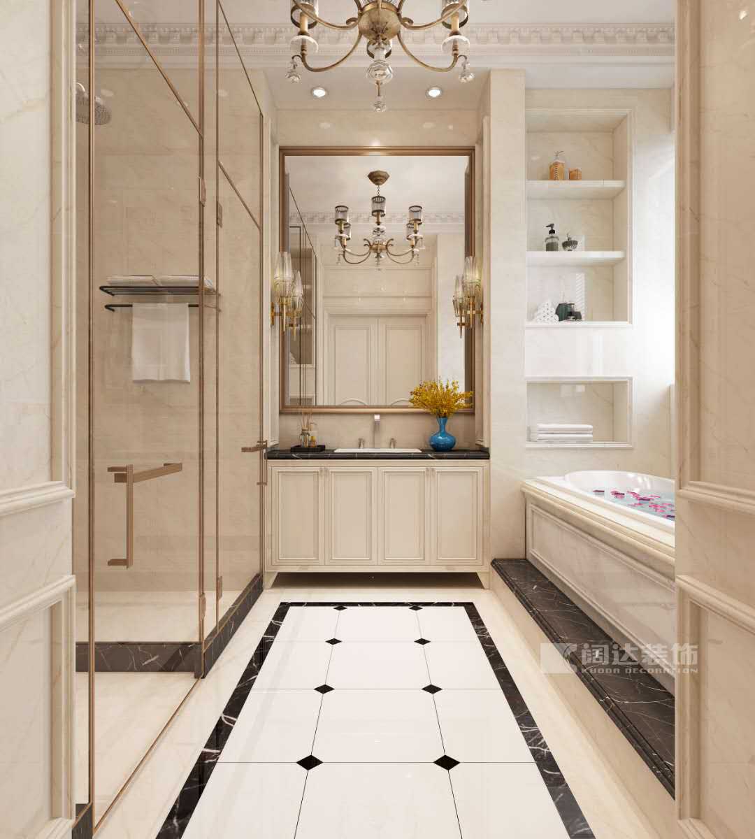 本案設計為法式風格,法式雕花和線條的運用,凸顯出空間的奢華感和貴族氣息,家居軟裝的色彩搭配,讓家有了舒適和浪漫的情調,從傳統的繁奢到現代的簡練;從巴洛克的奢華到洛可可的纖細;從新古典的曼妙到帝政風格的恢弘,她不僅是一門藝術,也象征著一種情懷,家,正是如此!
