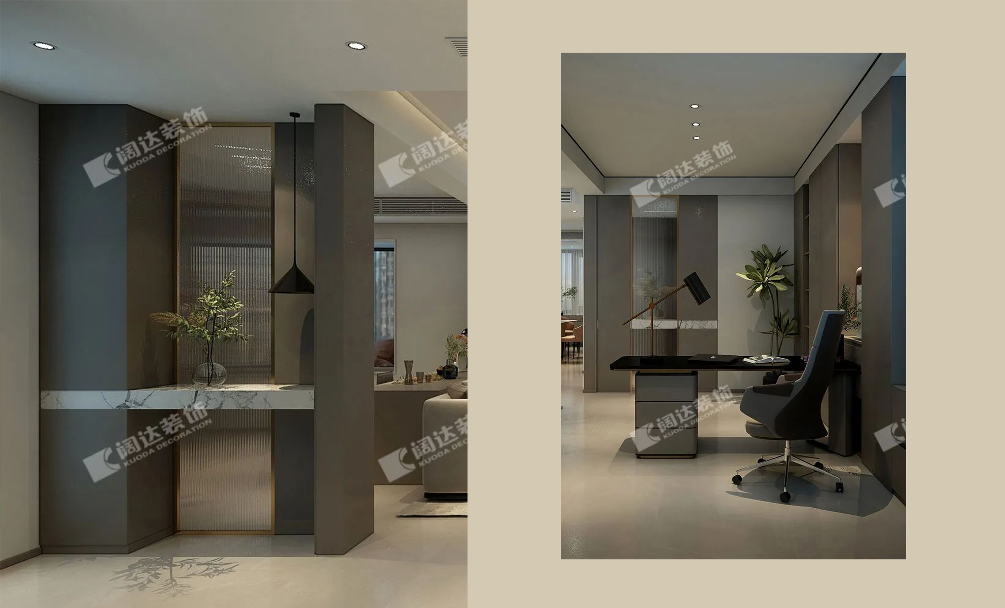 本案用簡潔的木制格柵材質做主背景,流露出生活的溫度,傳遞著居住者對美好生活的向往。簡約格局呈現出現代居家生活的精致、舒適與自由。
