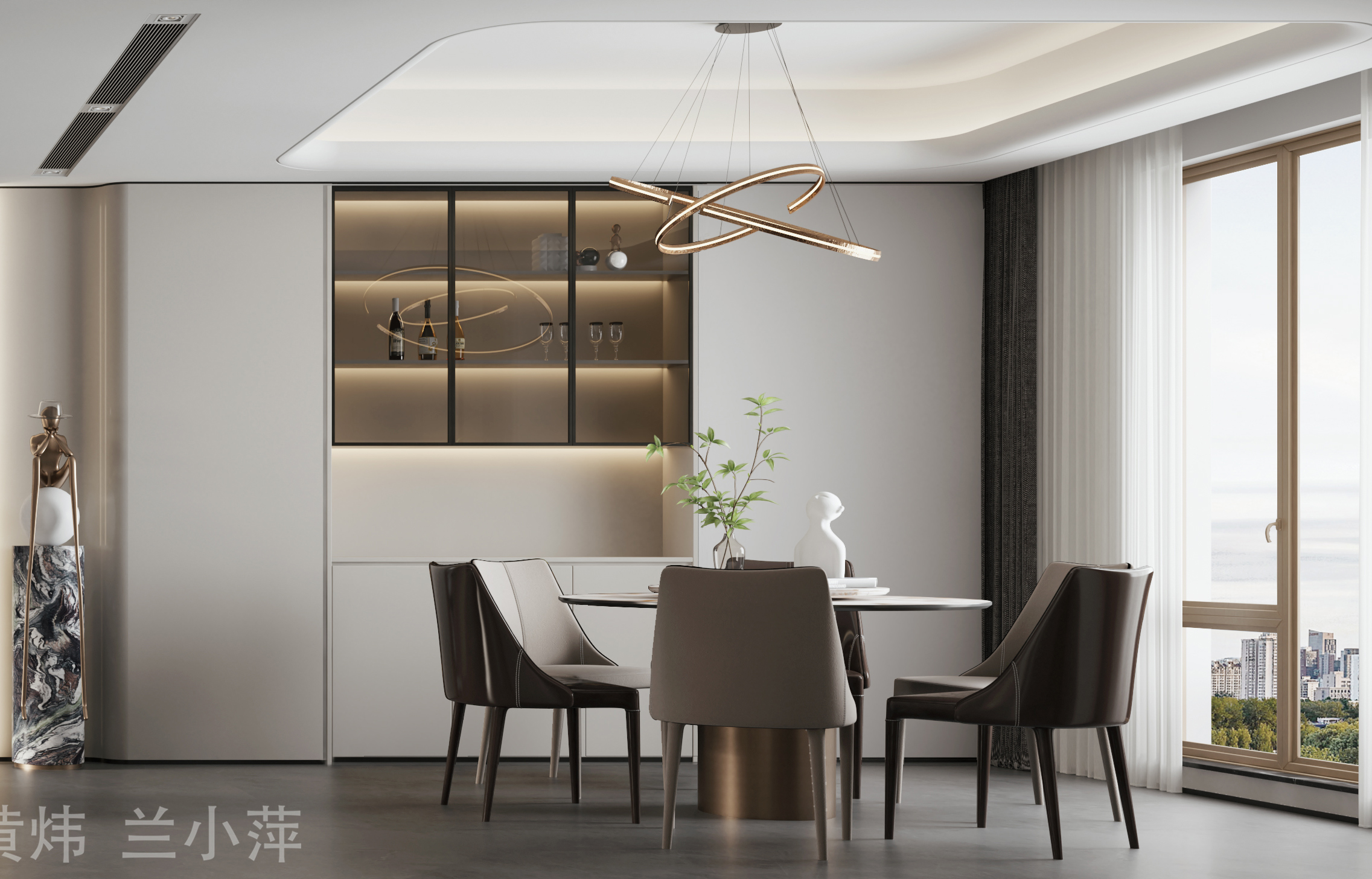 廚房區(qū)設(shè)計(jì)隱藏式推拉移門,增加了餐廚區(qū)空間延展性,也使烹飪空間更加靈活,餐廳區(qū)域空調(diào)冷氣使得廚房更加舒適。
