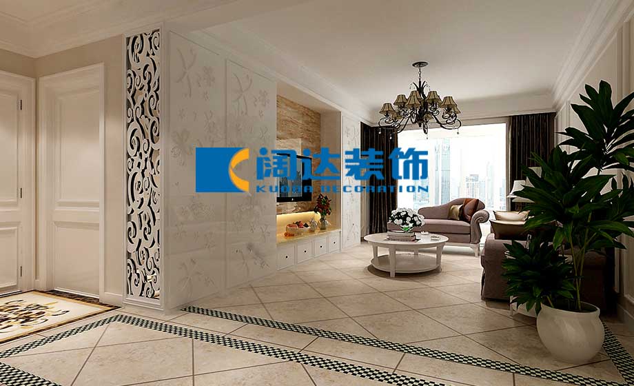 本案的主題思路圍繞簡奢、實用這兩個關鍵詞,目的是為了營造出富有簡奢氛圍的家居空間,可以讓人在這個空間里能夠感受到細致奢華的氛圍,并且簡歐風格在延續(xù)歐式奢華的同時舍棄了一些紛繁復雜的造型和光怪陸離的氣息,體現(xiàn)了年輕業(yè)主對精致生活的期許。客廳: 簡約之風為主,背景墻運用精致花格和石材的搭配組合,制造出簡奢的電視墻質感,并且充分利用客廳的原有跨度,從原有電視墻起做了一個隱藏式衣柜,再用表面的花格柜門做裝飾,這樣就同時兼顧了實用性和裝飾性。 臥室:簡潔的燈帶造型加之慵懶氣息的軟臥配飾,彰顯溫馨舒適的休憩氛圍。