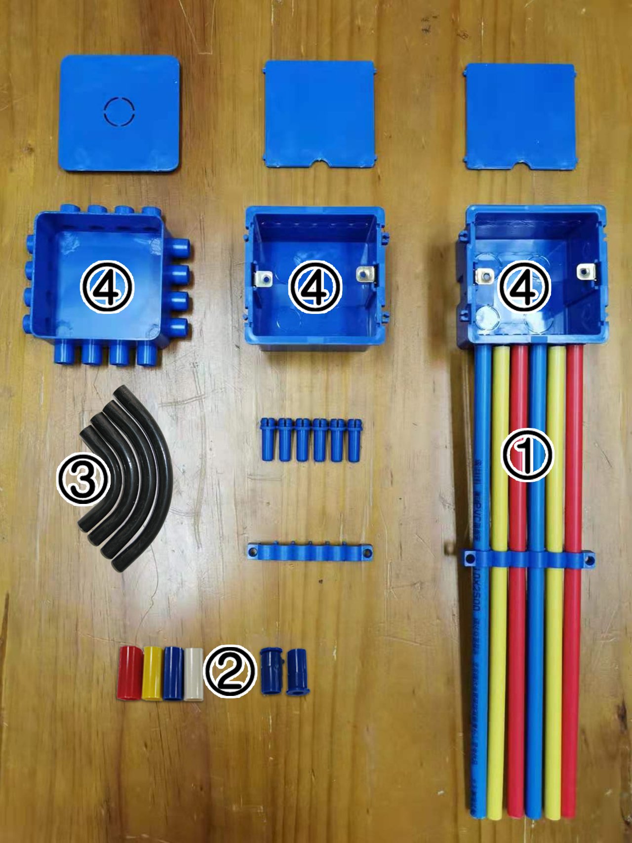 單管單線中黃色線管為地線管,在敷設時必須放在三根線管的中間位置。